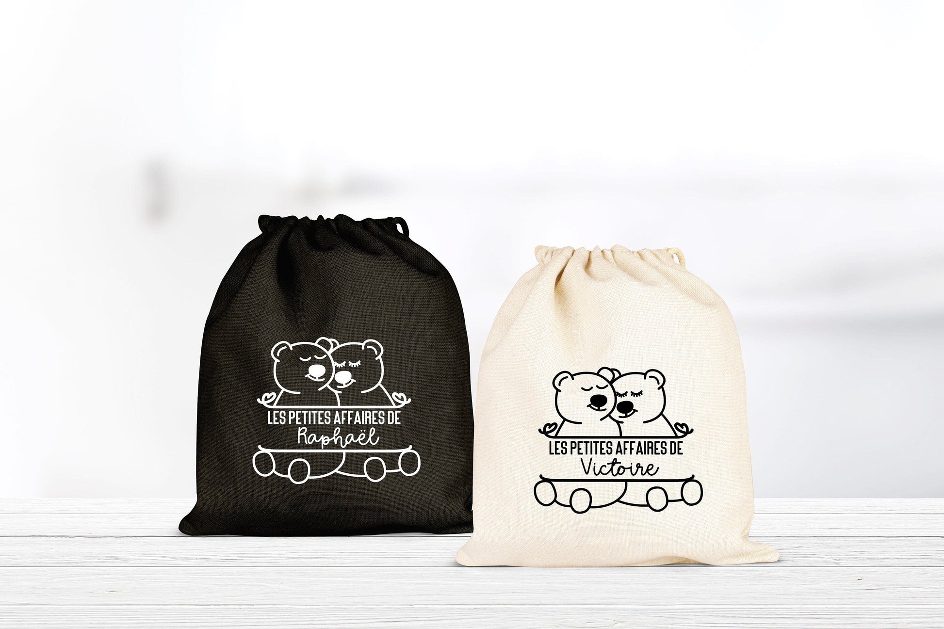 Pochon Ourson personnalisé avec prénom sera l'accessoire préféré de votre enfant. Il lui permettra de ranger et transporter toutes ses affaires.