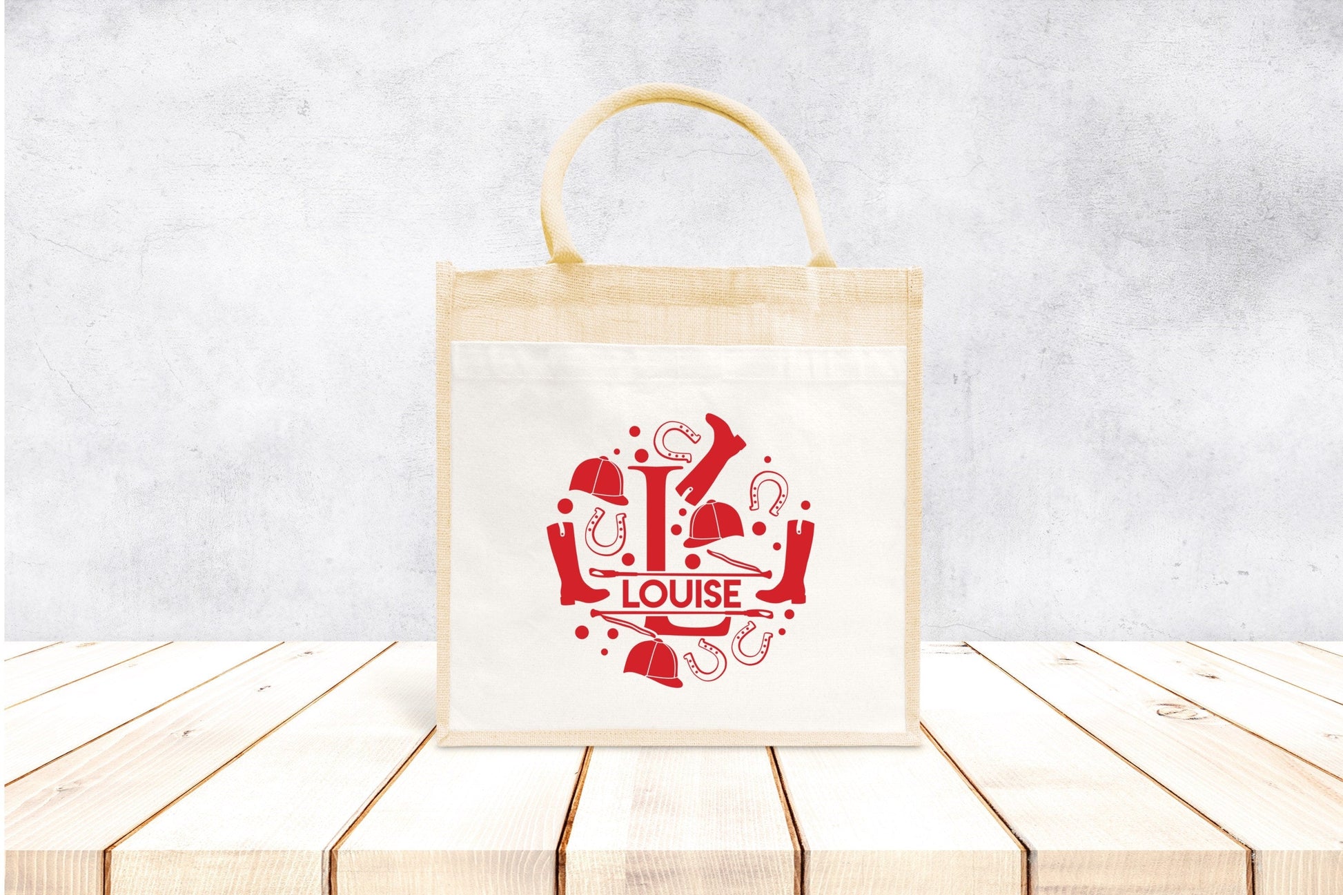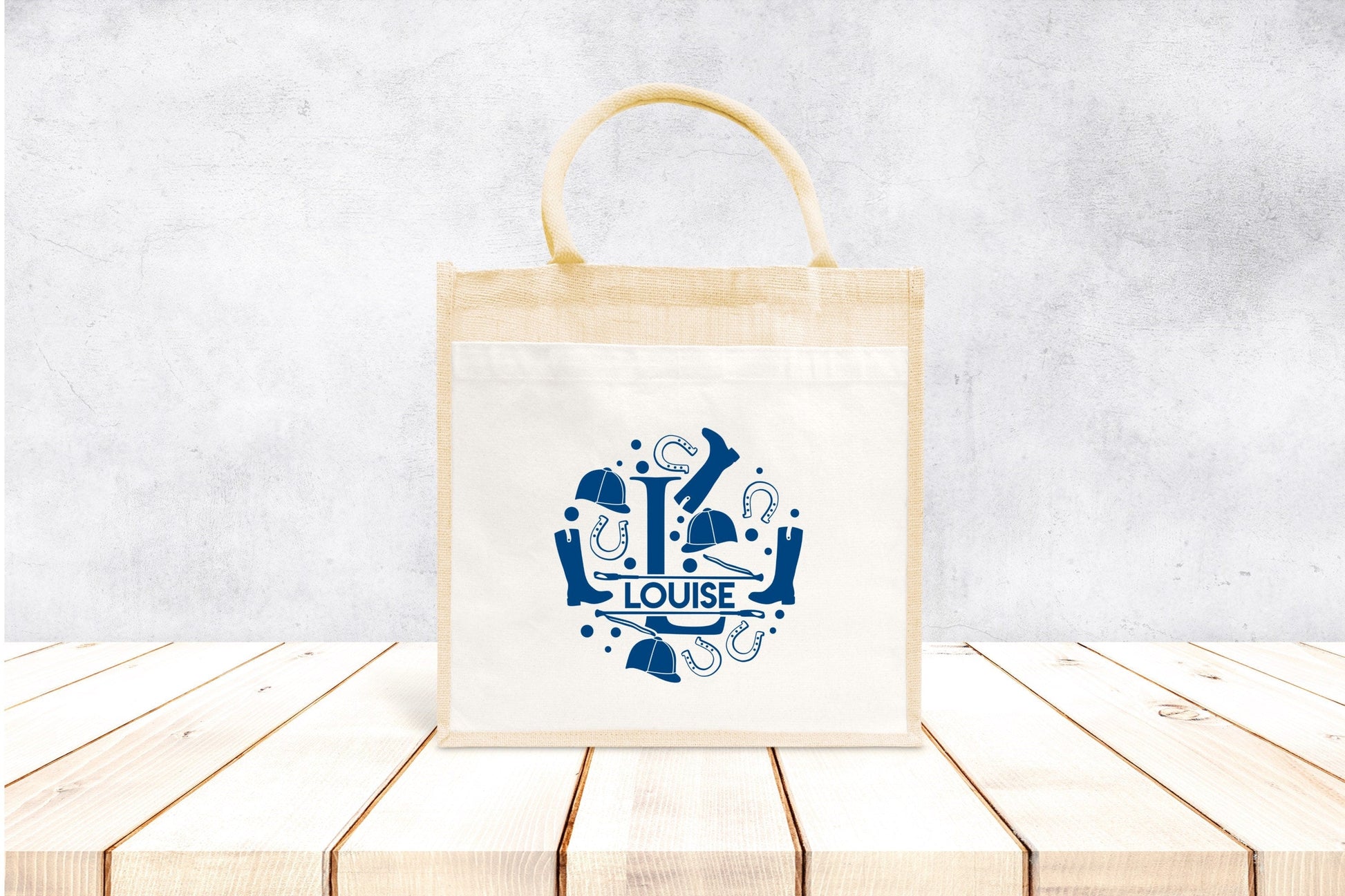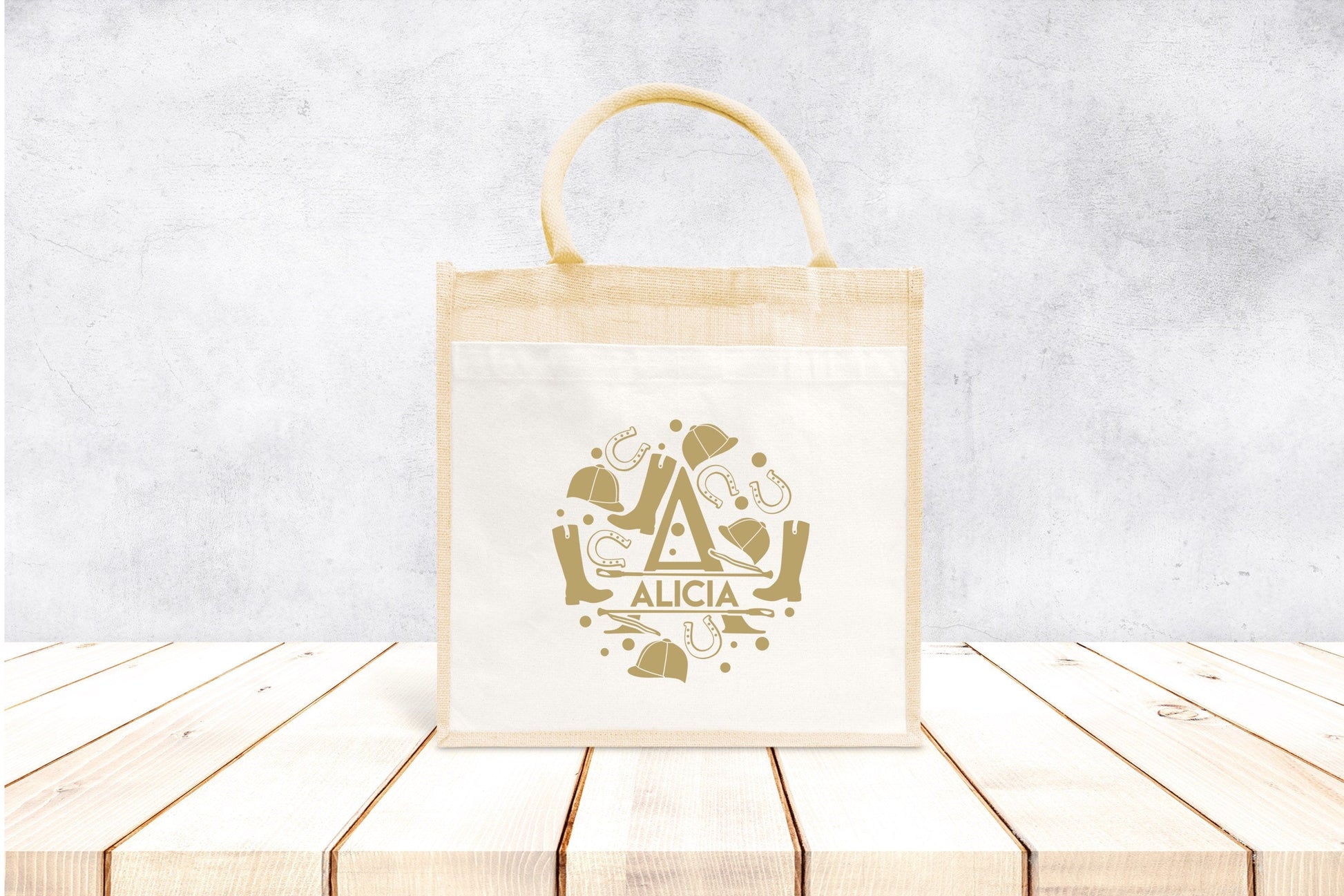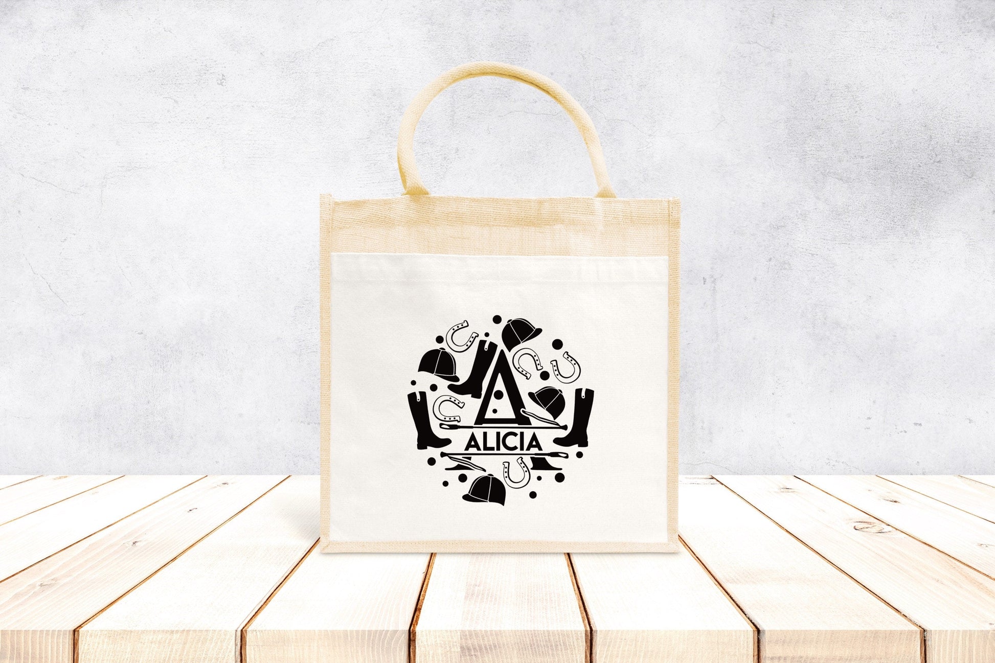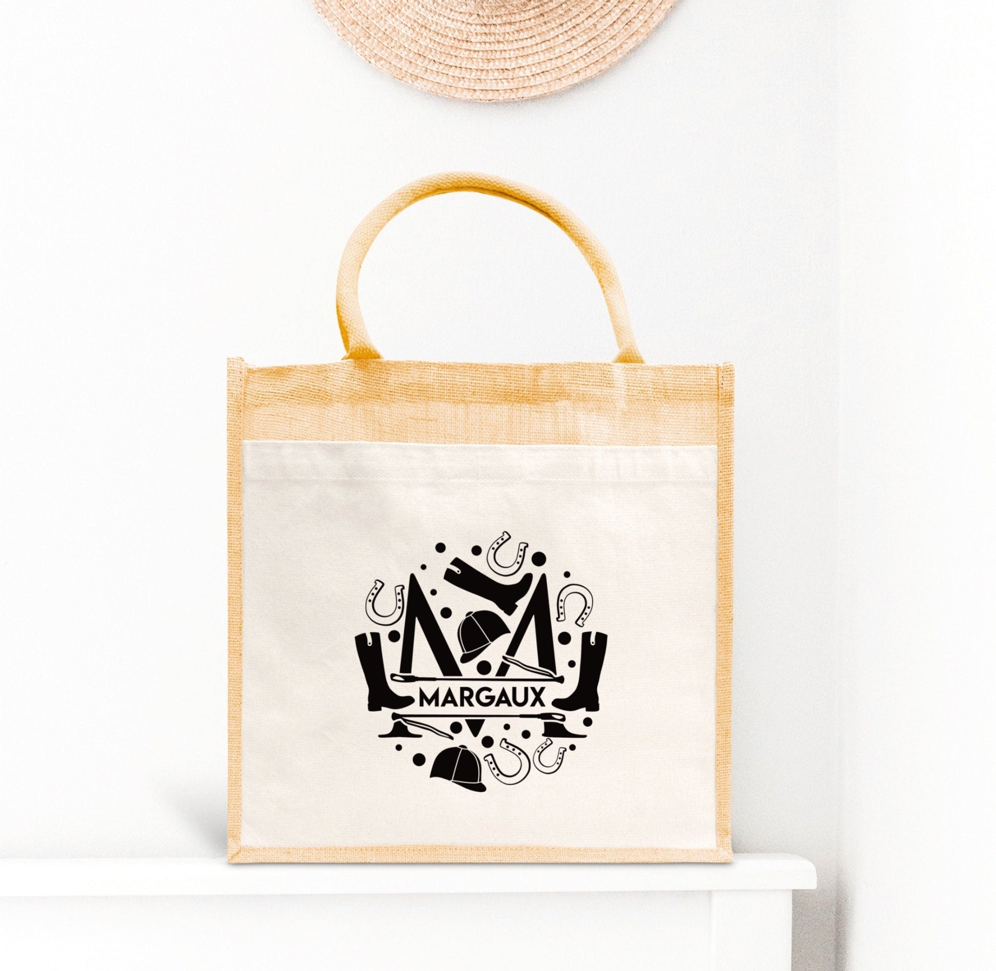 Sac Cabas toile et jute enfant personnalisé, Cadeau enfant prénom, Cadeau anniversaire enfant, Sac équitation