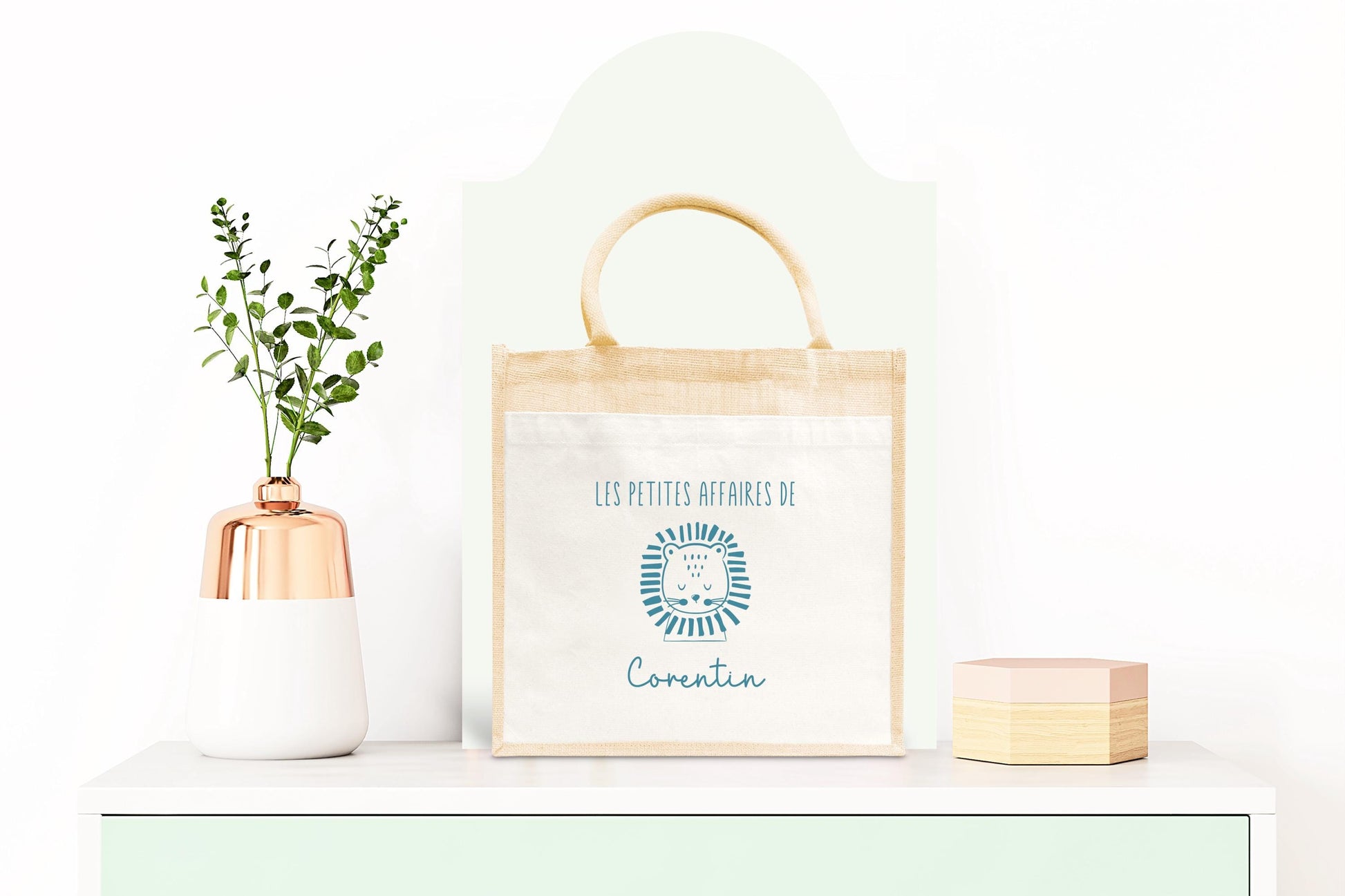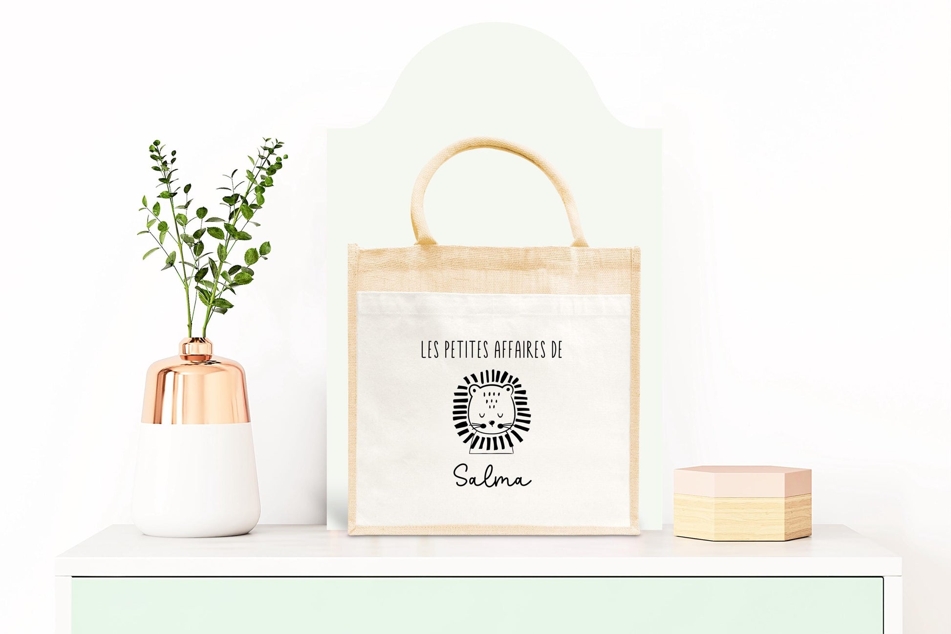 Sac Cabas toile et jute enfant personnalisé, Cadeau enfant prénom, Cadeau anniversaire enfant, Sac lion