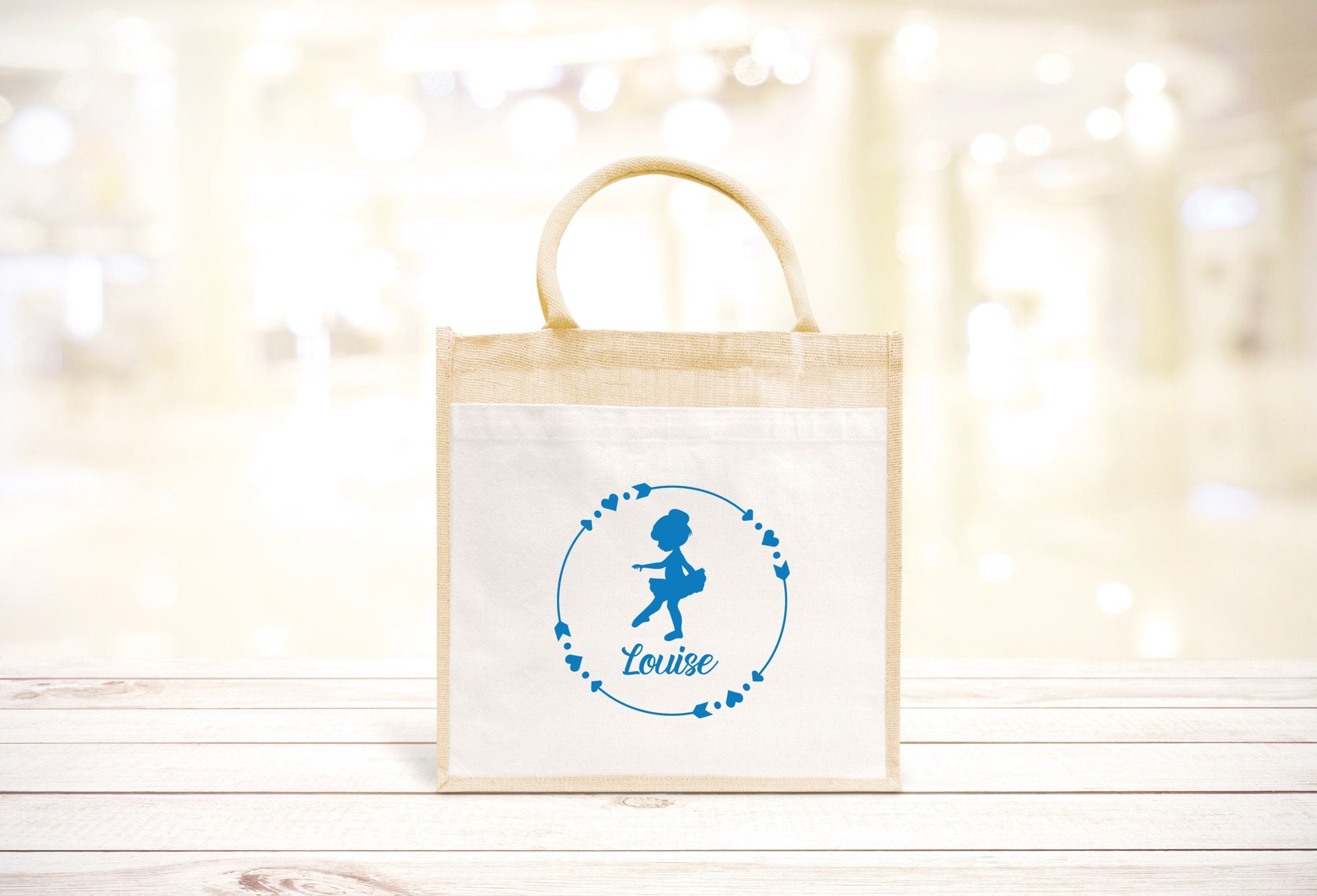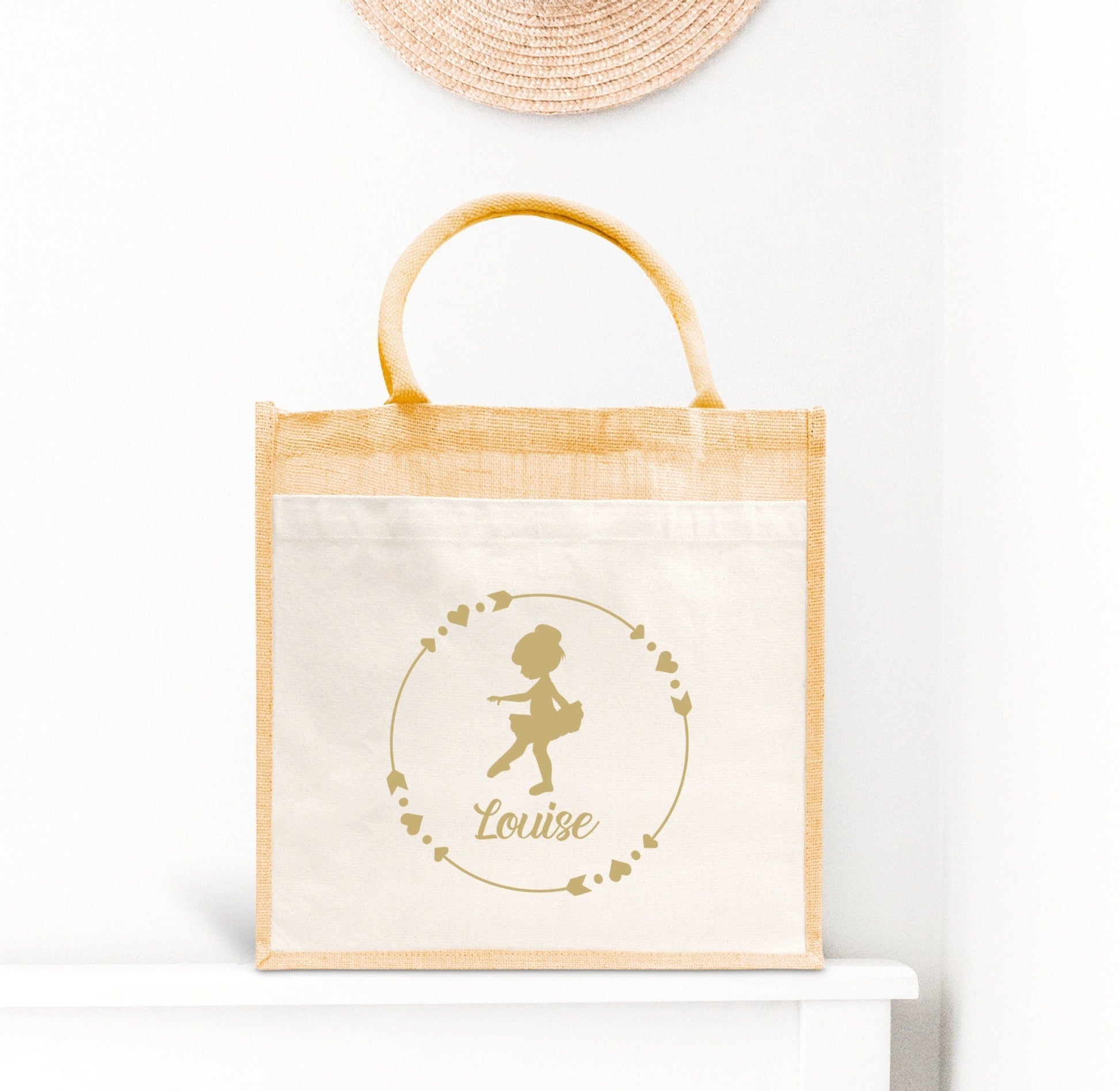 Sac Cabas toile et jute enfant personnalisé, Cadeau enfant prénom, Cadeau anniversaire fille, Sac enfant ballerine