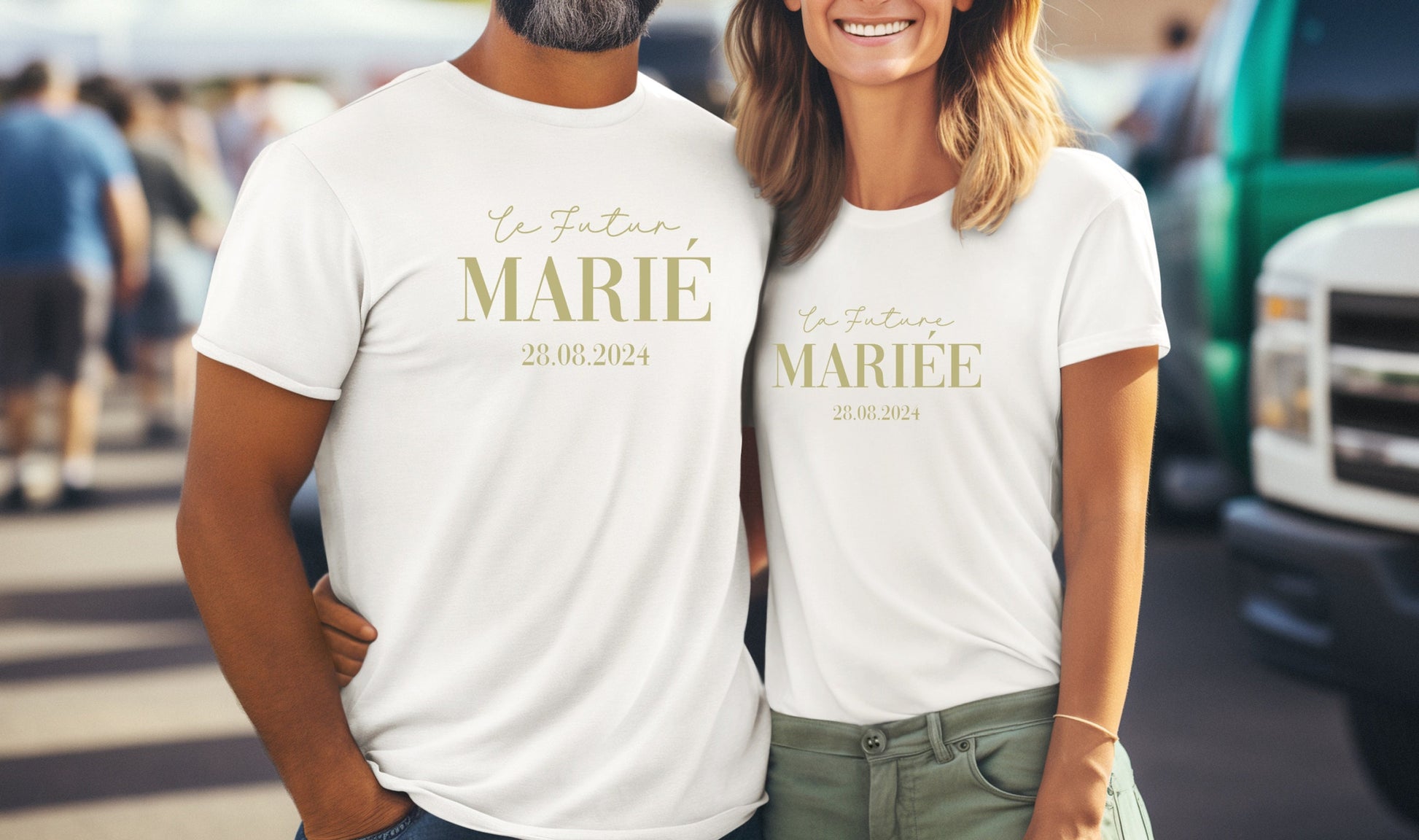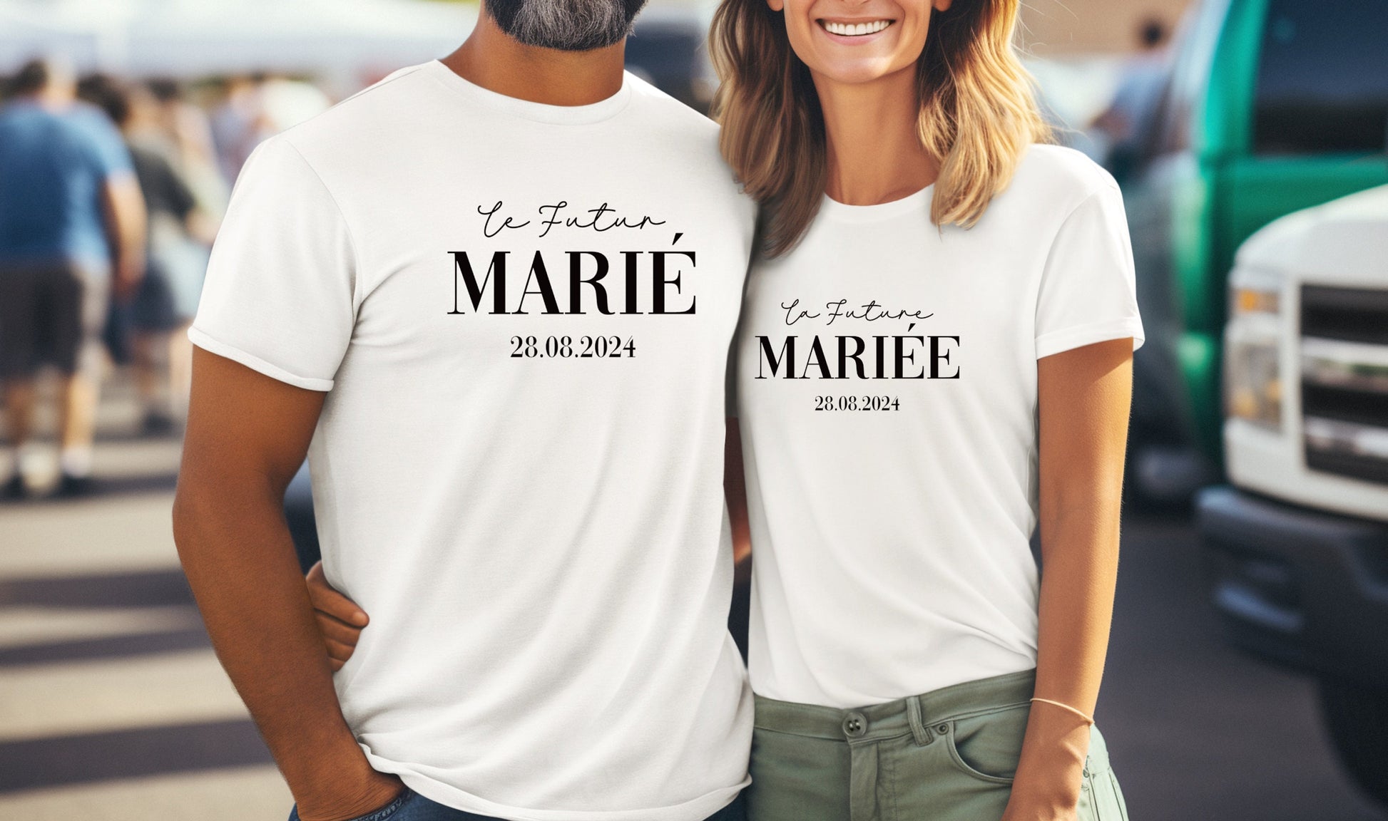 T-shirt de couple assorti Mr et Mme, T-shirt couple mariage