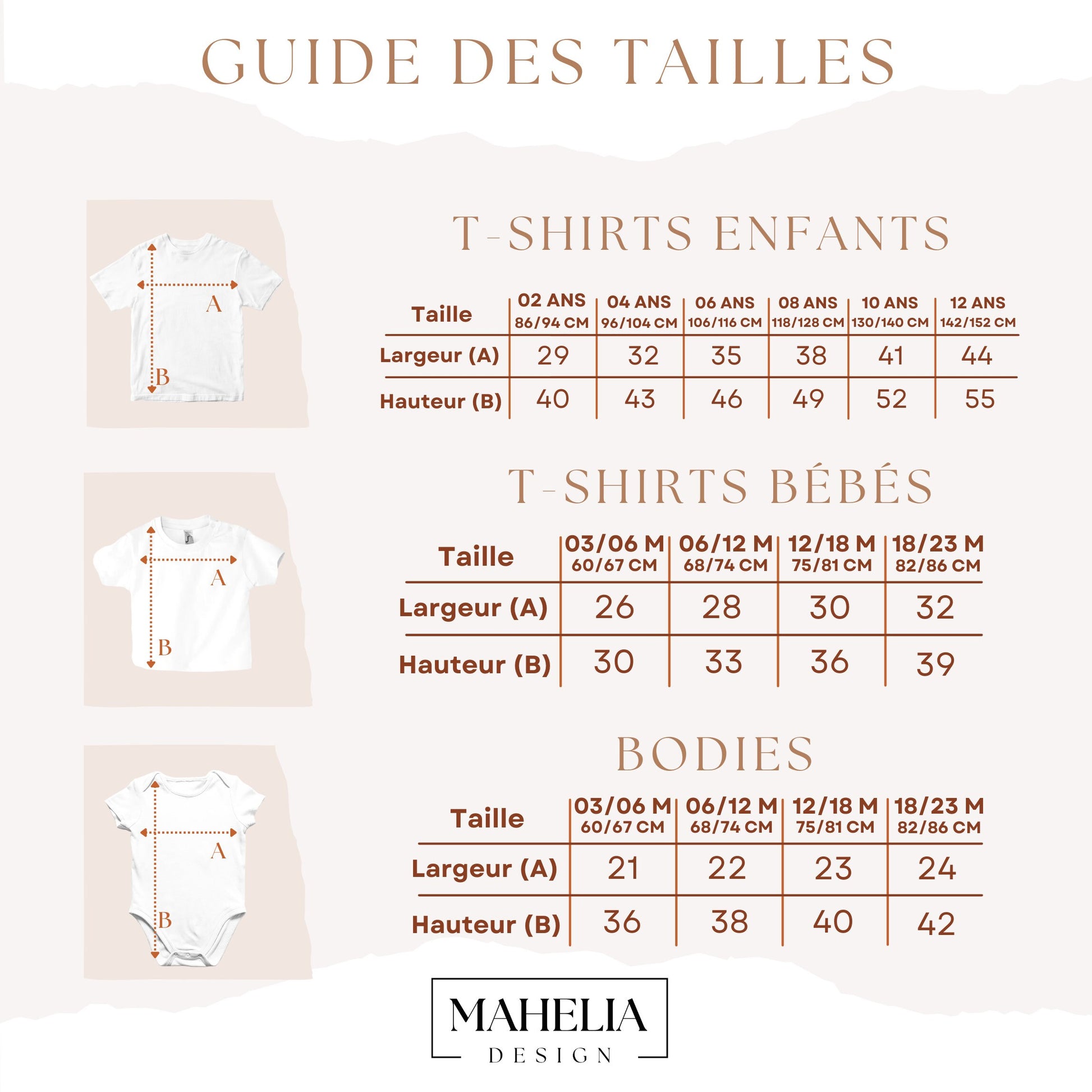 Veuillez noter que les t-shirts femme taillent plus petits que la taille standard alors que les t-shirts homme et enfant taillent plus grands que la taille standard.