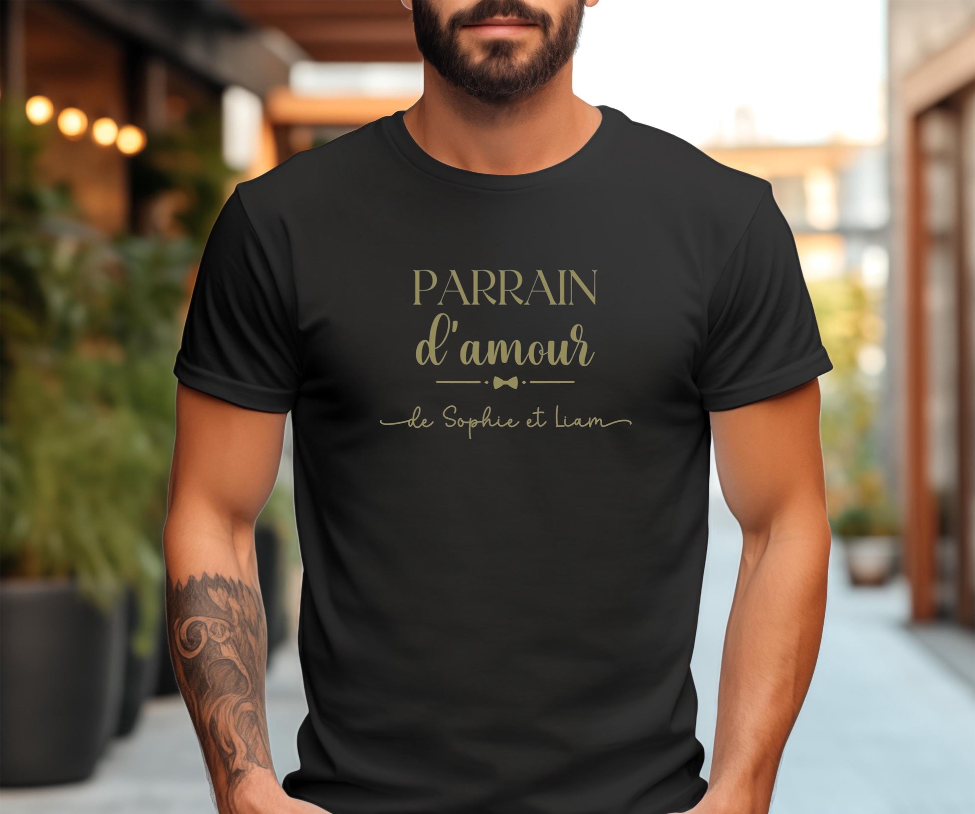 T-shirt Parrain d'Amour Personnalisé, Prénoms Filleuls, Cadeau Baptême, Annonce Parrain