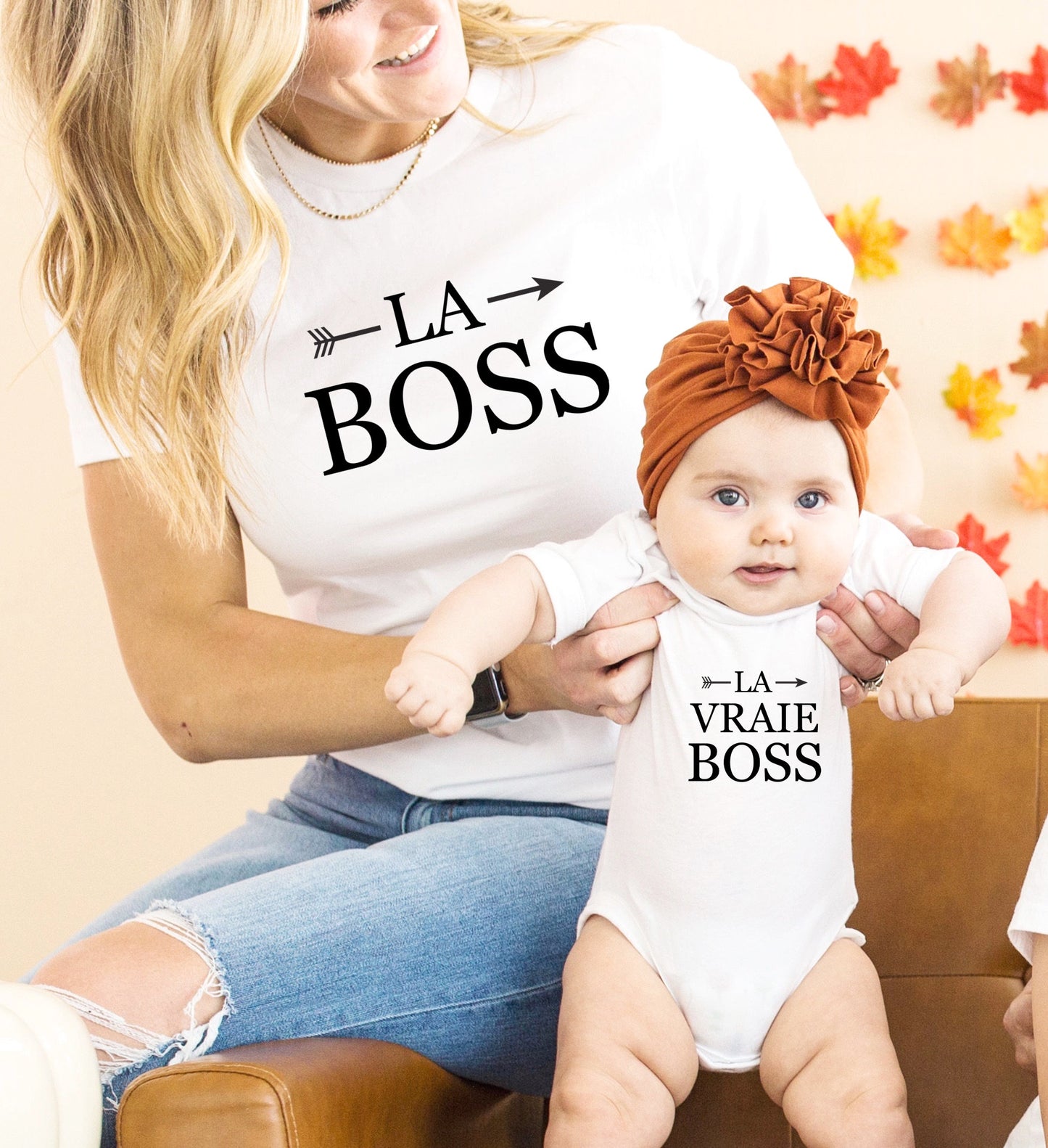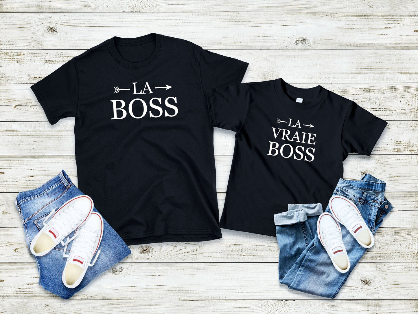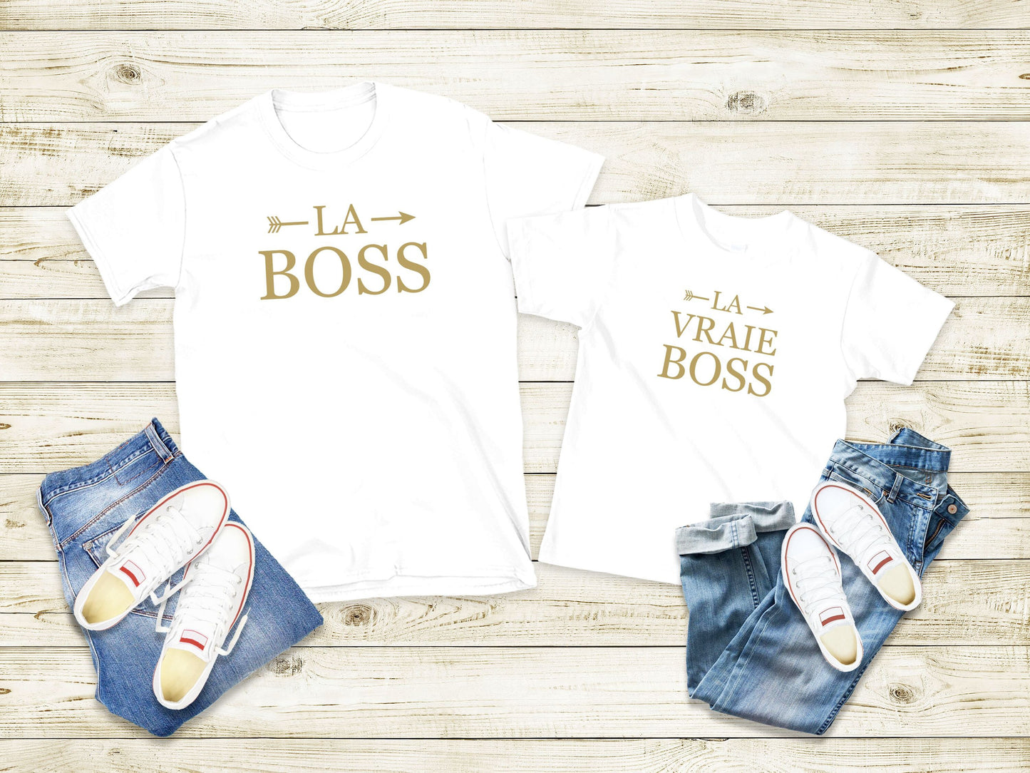 Voici le parfait t-shirt duo entre la mère et sa fille ! Célébrez ce lien en portant ces jolis t-shirts tout en sachant qu'une seule d'entre elle peut vraiment être considérée comme la Boss. Bien sûr, nous savons tous laquelle... Un cadeau parfait pour maman à offrir pour la fête des mères, les anniversaires ou toute autre occasion spéciale.